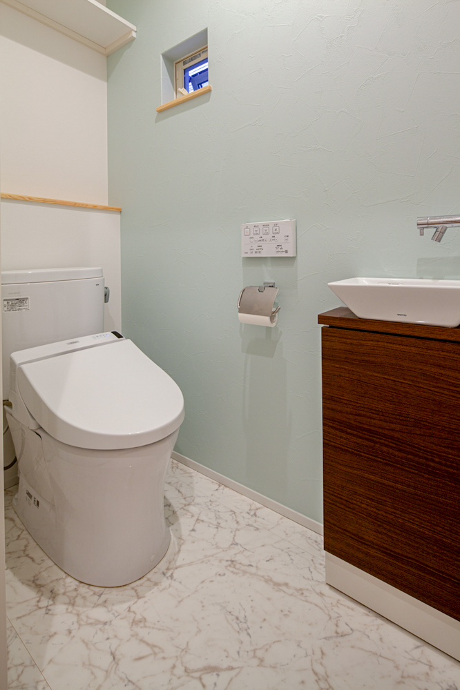 2階のトイレは心休まる空間を作ろうと細部にこだわりました。