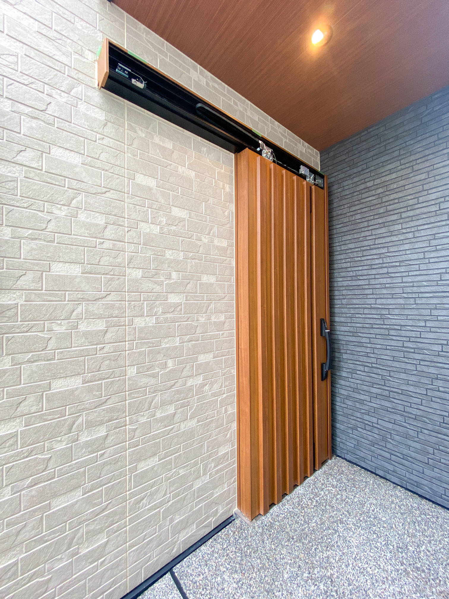 玄関ドアも引き戸にすることで、扉周りのスペースを確保しています。