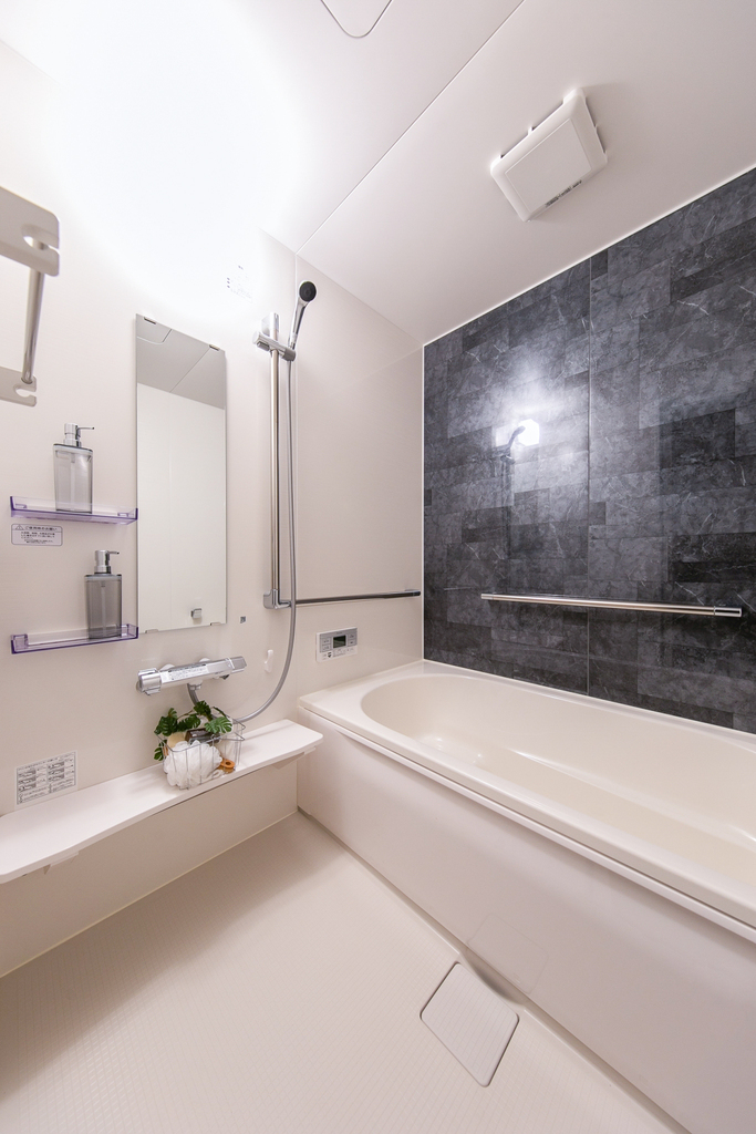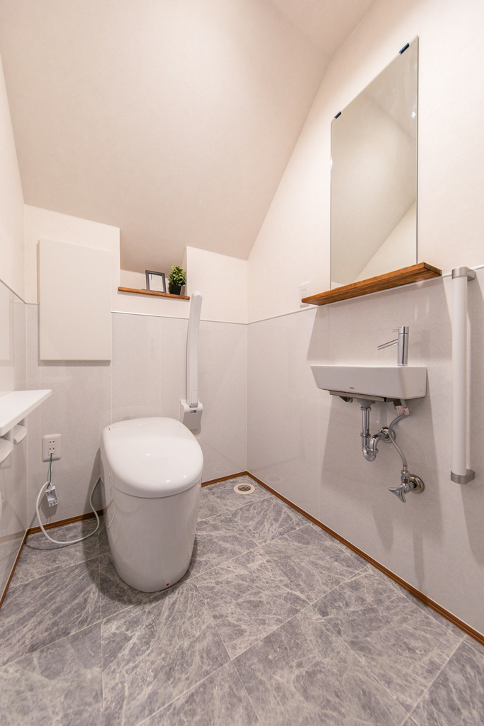 老後でも使いやすいように手すりを設置した広々としたトイレ