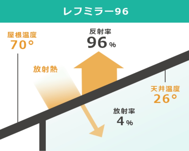 この放射熱を室内にため込まないために「遮熱」が必要となるのですが、ほとんどの建材は遮熱反射率が低いため、この状況では室内環境を改善することが難しいです。