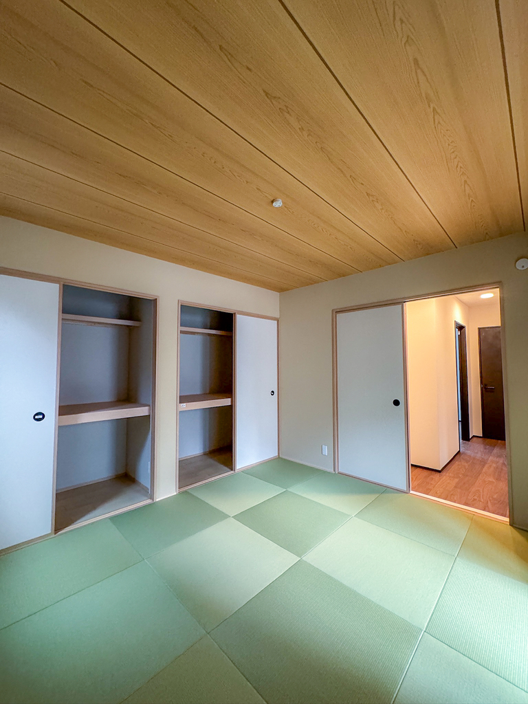 2階の和室は琉球畳の鮮やかなグリーンが目を引きます。